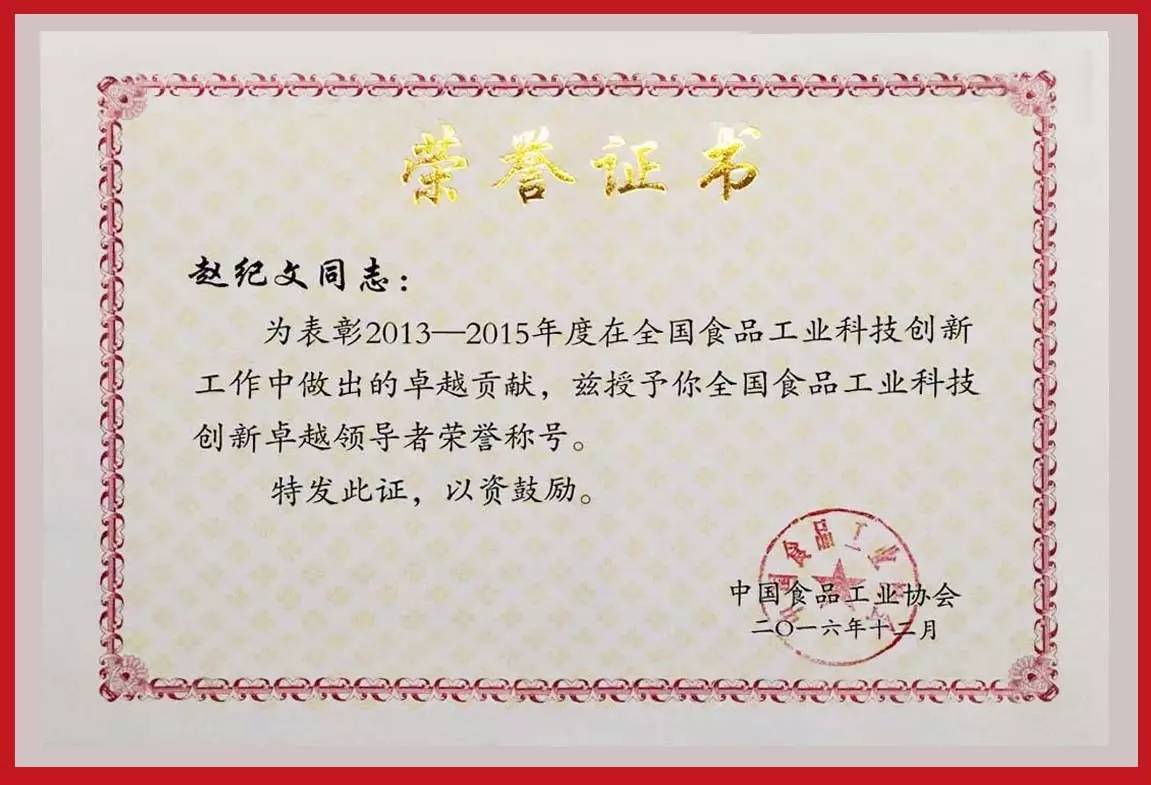 中國(guó)釀酒大師、教授級(jí)高級(jí)工程師、國(guó)井集團(tuán)董事局主席趙紀(jì)文,再次獲得“全國(guó)食品工業(yè)科技創(chuàng)新卓越領(lǐng)導(dǎo)者”榮譽(yù)稱號(hào)。