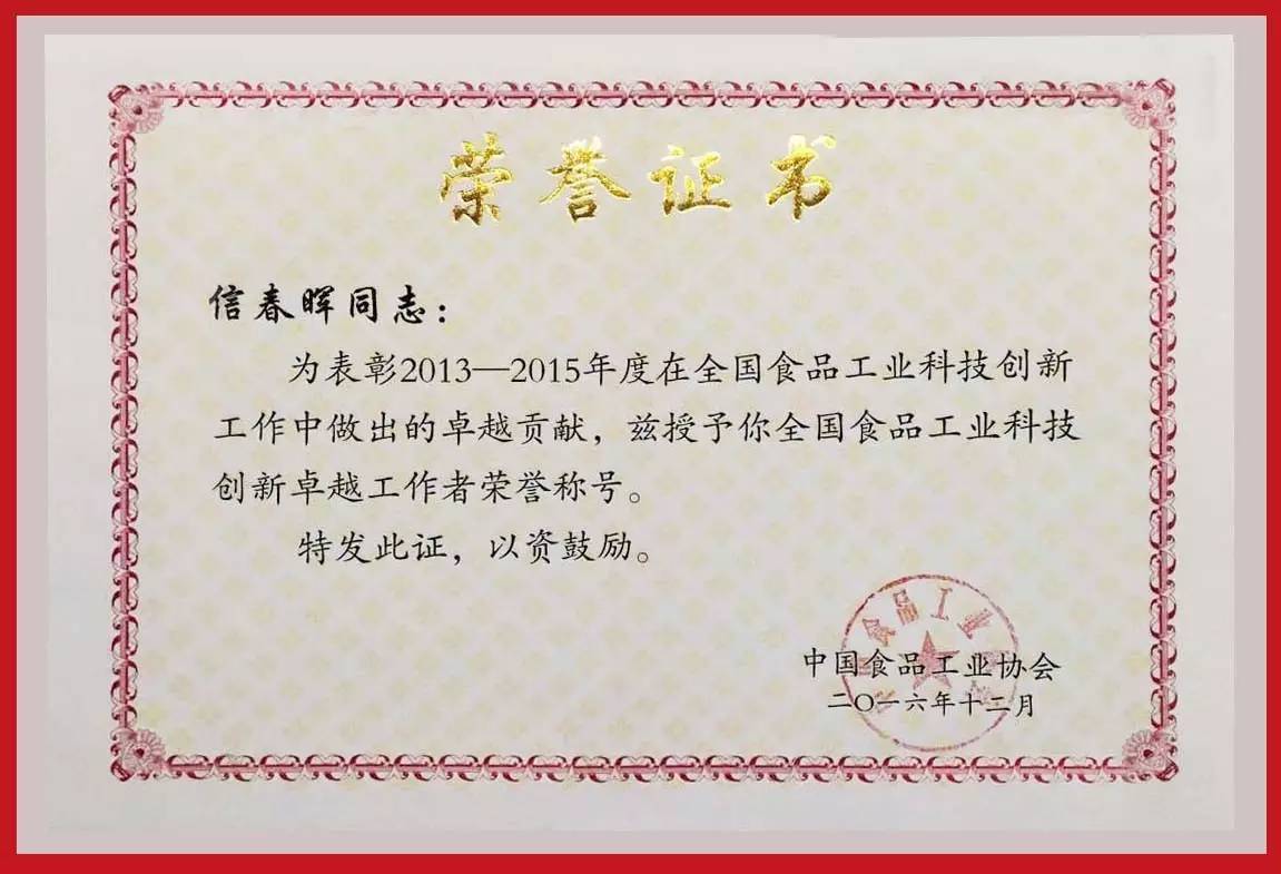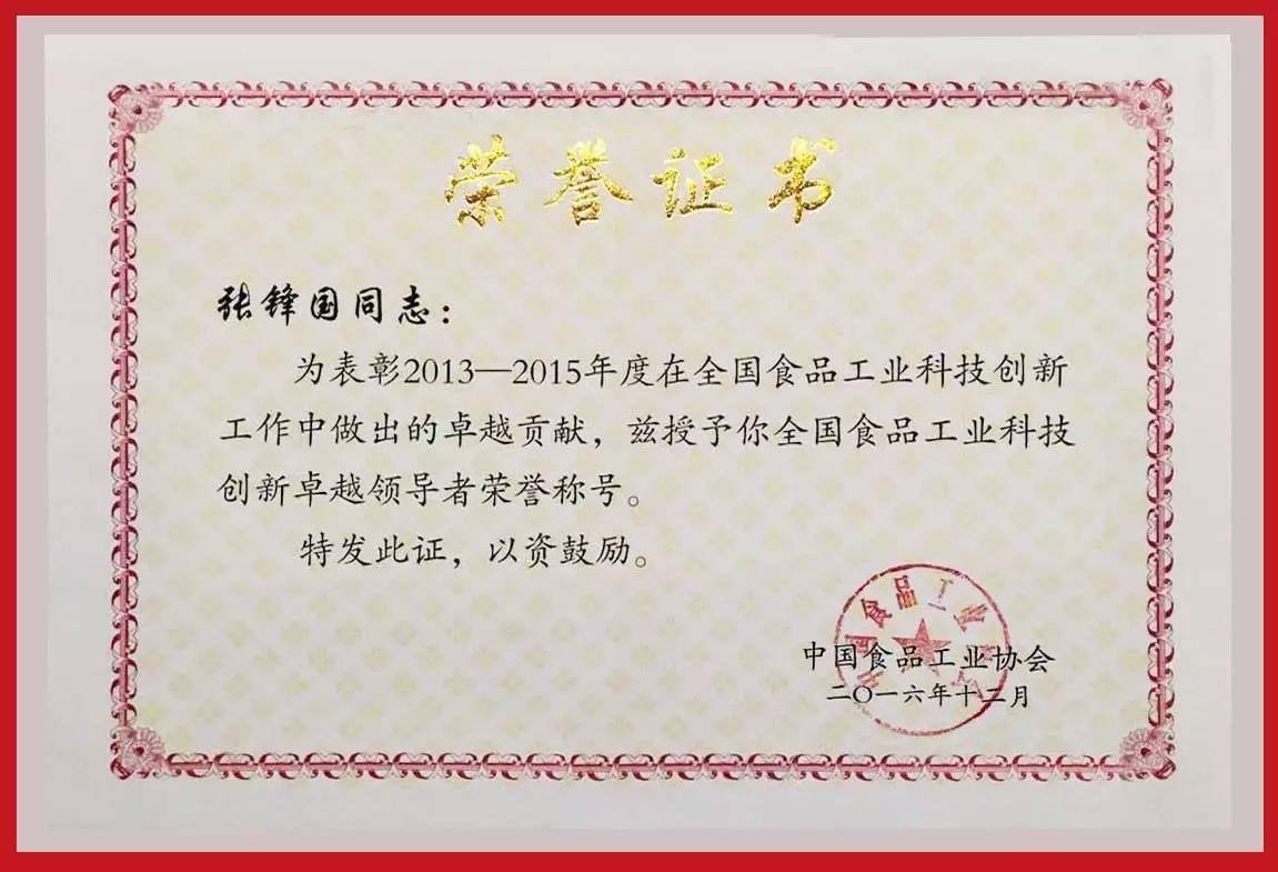 中國(guó)第一品酒師、國(guó)井扳倒井總工程師張鋒國(guó),獲“全國(guó)食品工業(yè)科技創(chuàng)新卓越領(lǐng)導(dǎo)者”榮譽(yù)稱號(hào)。中國(guó)白酒工藝大師、副總工程師信春暉,獲“全國(guó)食品工業(yè)科技創(chuàng)新卓越工作者”榮譽(yù)稱號(hào)。