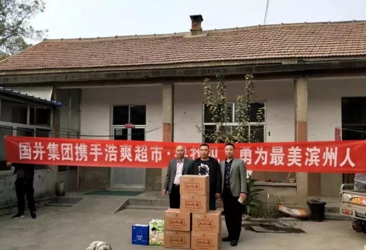 國(guó)井酒業(yè)為傳播正能量,弘揚(yáng)見義勇為精神。經(jīng)多方打聽,在浩爽零批超市老板的幫助下 找到見義勇為者。國(guó)井集團(tuán)駐濱州辦事處領(lǐng)導(dǎo)進(jìn)村慰問見義勇為救人者。